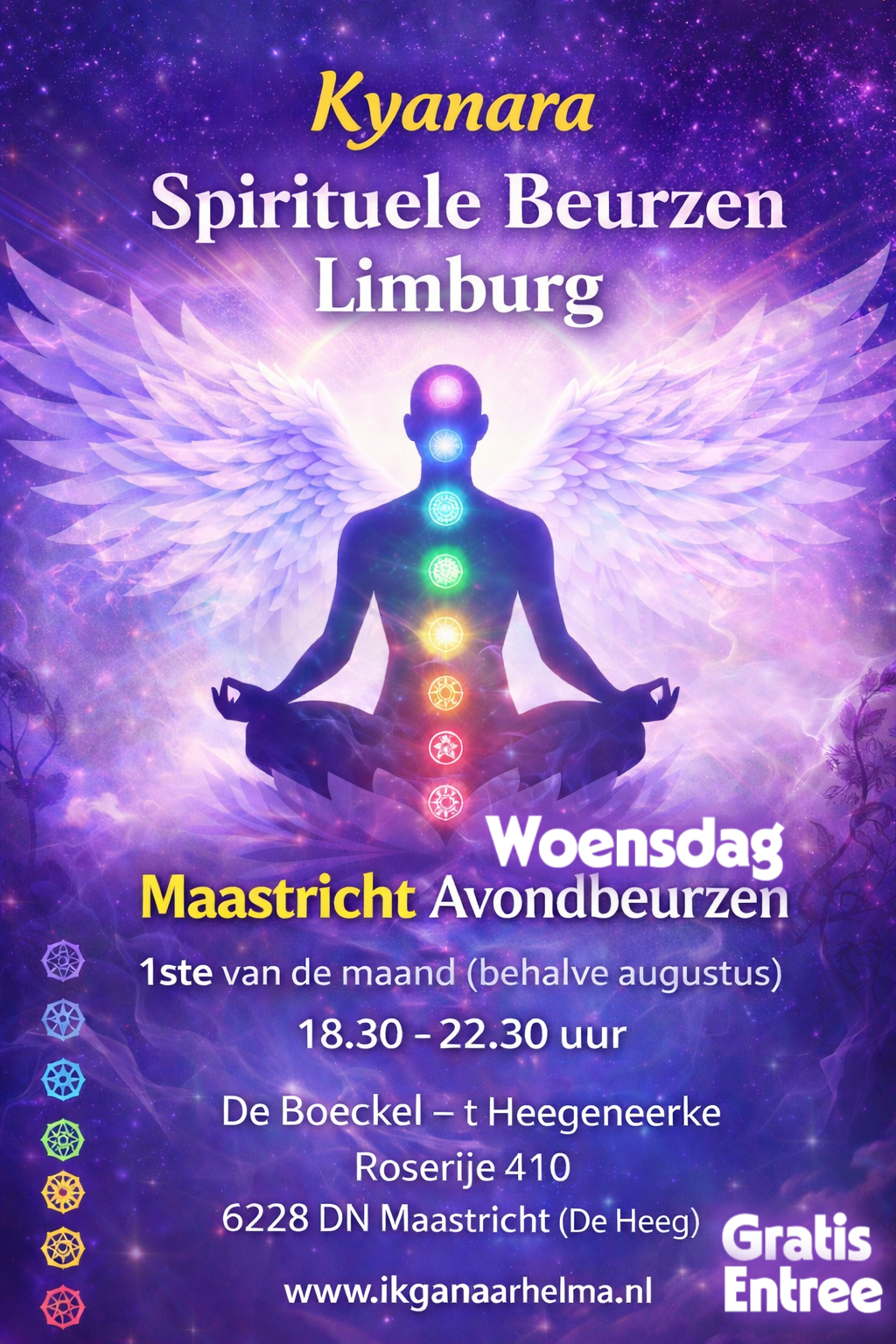 Op vrijdag 12 december van 11 uur tot 18 uur ben ik in bij Spiritueel centrum Yuna. Je kunt de hele dag gewoon naar binnen lopen om kennis te maken. Adres is: Sint Pieterstraat 6 in Kerkrade.